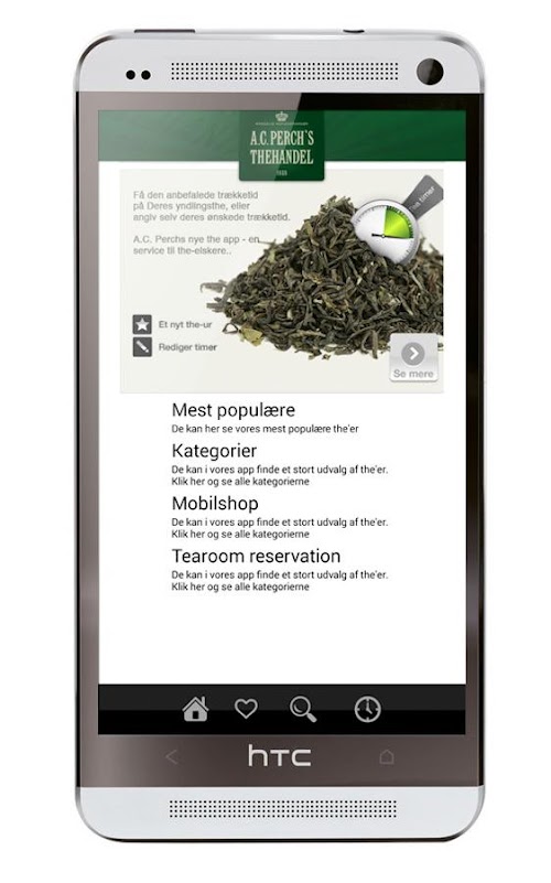 App'en giver yderligere information omkring de forskellige the'er. De finder også direkte link til the'en på A.C. Perchs mobilshop.
