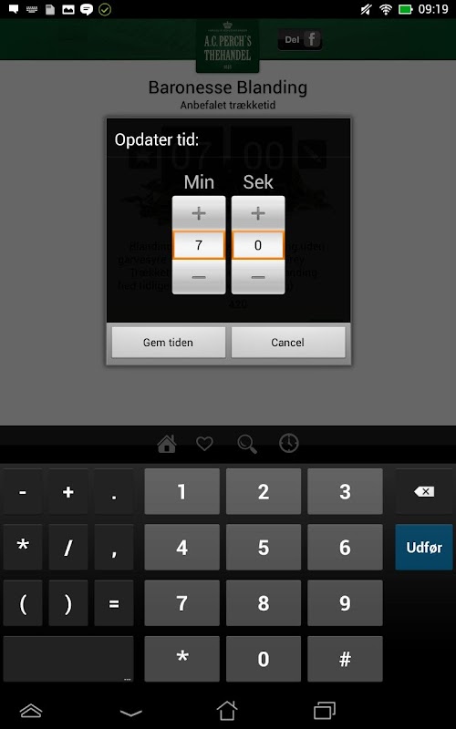 Når De har fundet Deres the, angives anbefalet trækketid samt optimal temperatur.