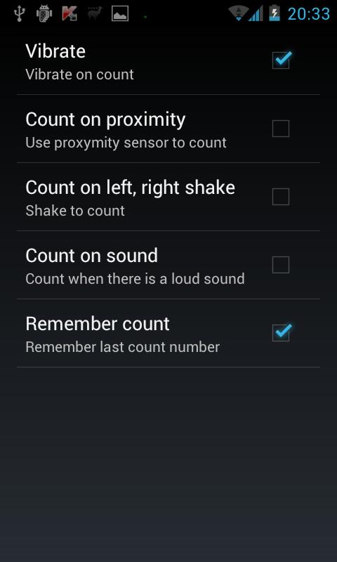 You can count by pressing the on screen button, by shaking your device, by shouting at it or by using your phones proximity sensor