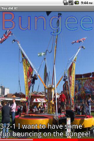 Students hear a description of something at the fun fair and then choose the matching photo.  When they have chosen the correct photo, they hear a memorable phrase about the content of the photo. After six right in a row, Race Mode starts automatically. It asks questions at speed to test the students' memory and comprehension of the material just covered, before continuing with new phrases and photos. At the end of the race, students can see how well they have done relative to their other races. The game gradually focuses on any material that the students have difficulty recognizing, and speeds up as competence is gained.