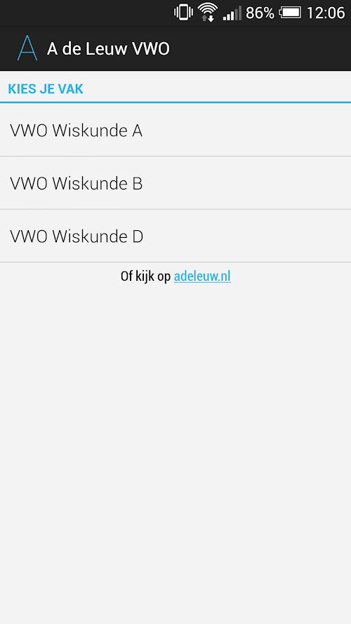 To further make your way to the right effects you can add a shortcut to your homescreen. You do this on most devices by clicking on an empty space on your homescreen and then choose Shortcuts> A Leuw the high school. Then choose the desired subject (Mathematics A, B or D) and the shortcut will be placed.
