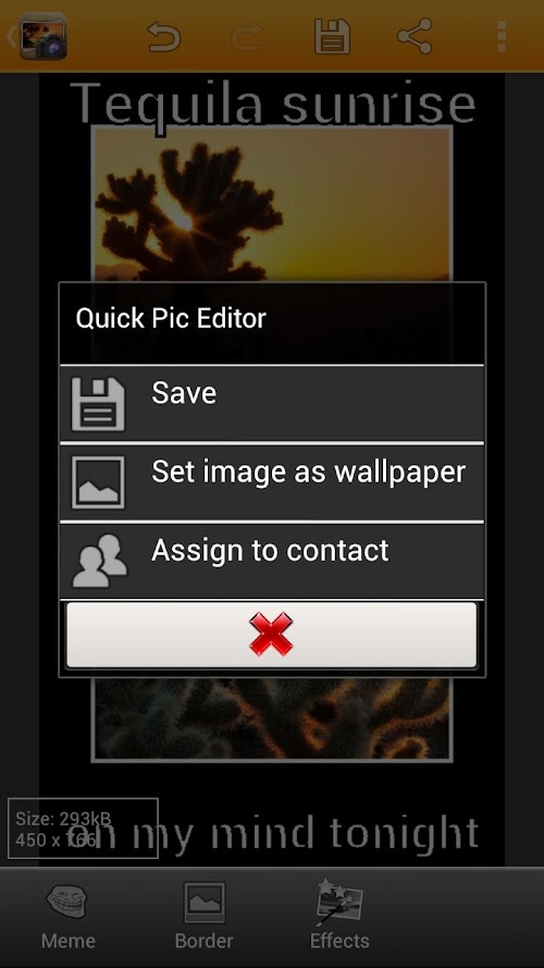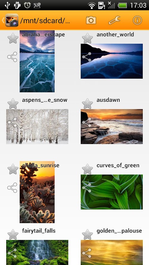 - Capability to save, set as wallpaper, assign to contact your pic!
