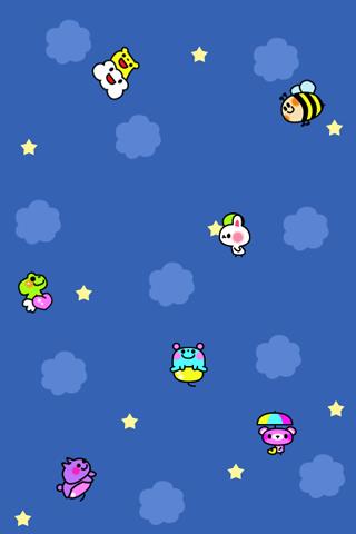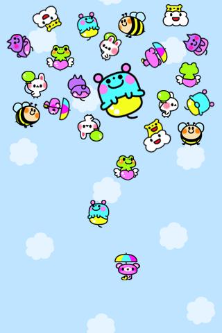 Characters float in the sky, slowly moving towards the upper part of a screen.
