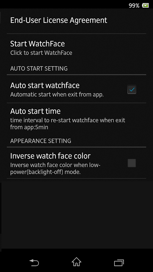 Turning off kind of the Automatic Start mode of another WatchFace app is Strongly recommended.