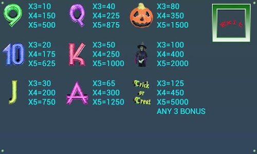- bonus (match any 3 or more trick or treat to starts the bonus game)