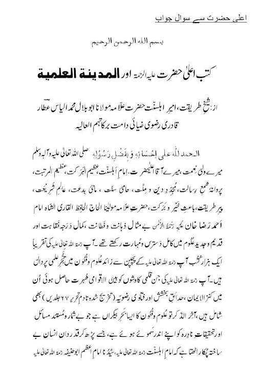 in This Book Question Answer By Alahazrat Ahmedraza Rahmatullahe Alayhe