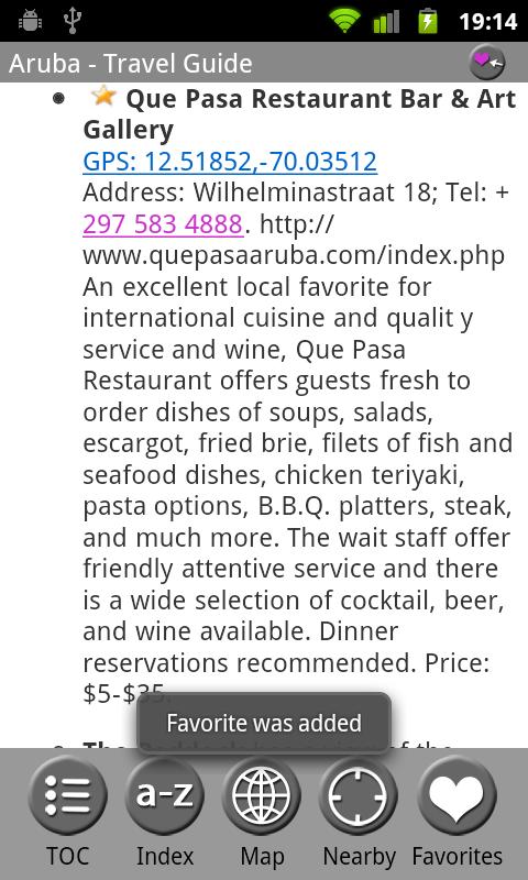 ✔ The top restaurants have been individually selected by MobileReference editors. These restaurants are marked by a star in the EAT chapter and are plotted on the GPS map.