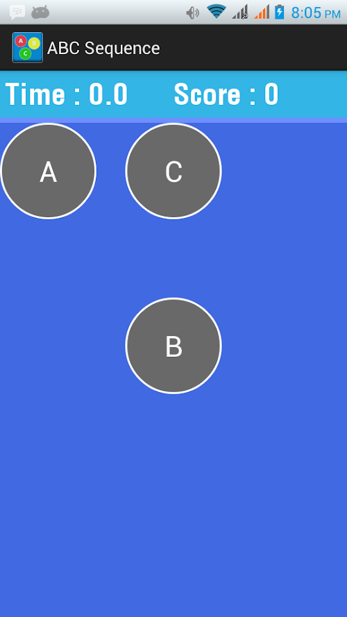 ABC Sequence is a free casual game for your Android device. Your task is to tap on ABC letters in sequence. Its Simple, Easy and Addictive Game which will help to increase your concentration power and alertness. Enjoy playing and share with your friends.
