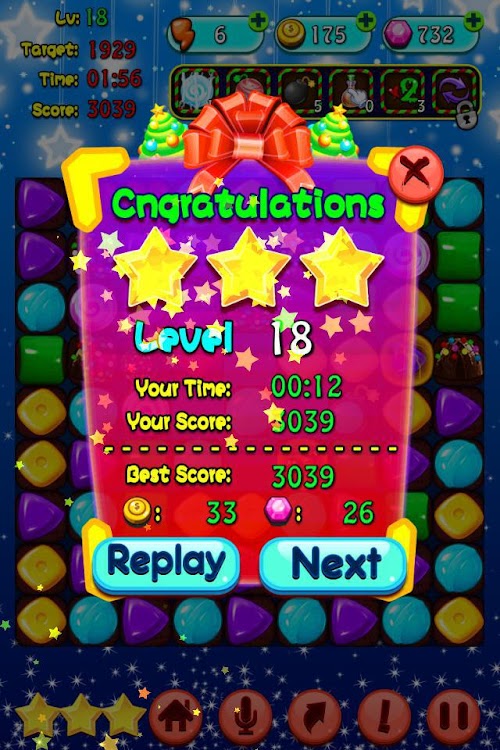 Gentle moving your finger in the screen, enjoy the fun of eliminating candies but do not need more thinking, it is a really relaxing.