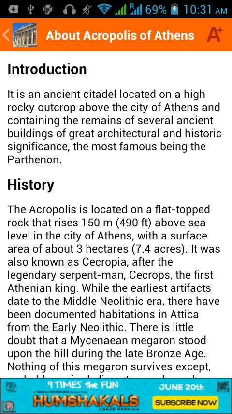 Monuments are the pride of the country they belong to. This Acropolis Of Athens app will provide you all the details about the famous monument. The Acropolis Of Athens is situated in Athens and it contains the remains of several ancient buildings of great architectural and historic significance, the most famous being the Parthenon. The Acropolis was formally proclaimed as the preeminent monument on the European Cultural Heritage list of monuments on 26 March 2007.