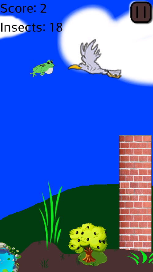 Sometimes, there are some birds flying in the sky and the frog must avoid them.