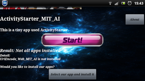 I'd appreciate it if Tatere to your role to verify the functionality of the ActivityStarter MIT App Inventor provides.