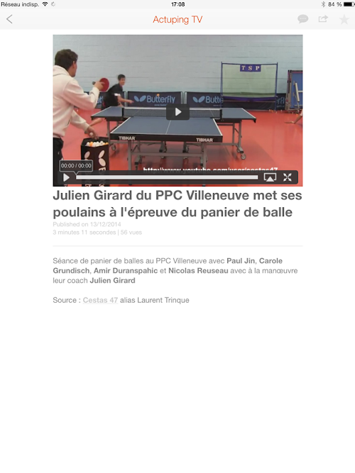 ActupingTV Tennis de Table est aussi une WEB TV qui produit ses propres contenus que ça soit sous forme de reportages, vidéos en compétitions et même sa propre émission nommée 100% PING.