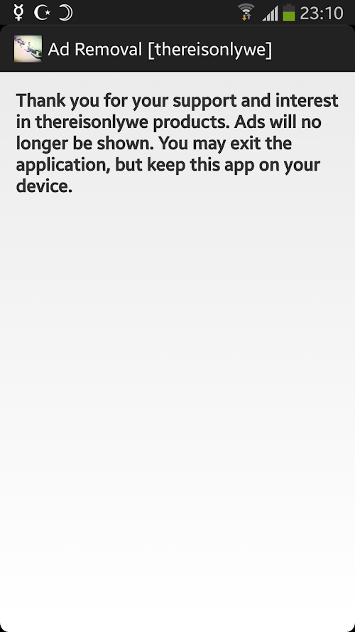 Notice 1: This ad removal app is for thereisonlywe Android apps only. There will be no refunds for this reason!