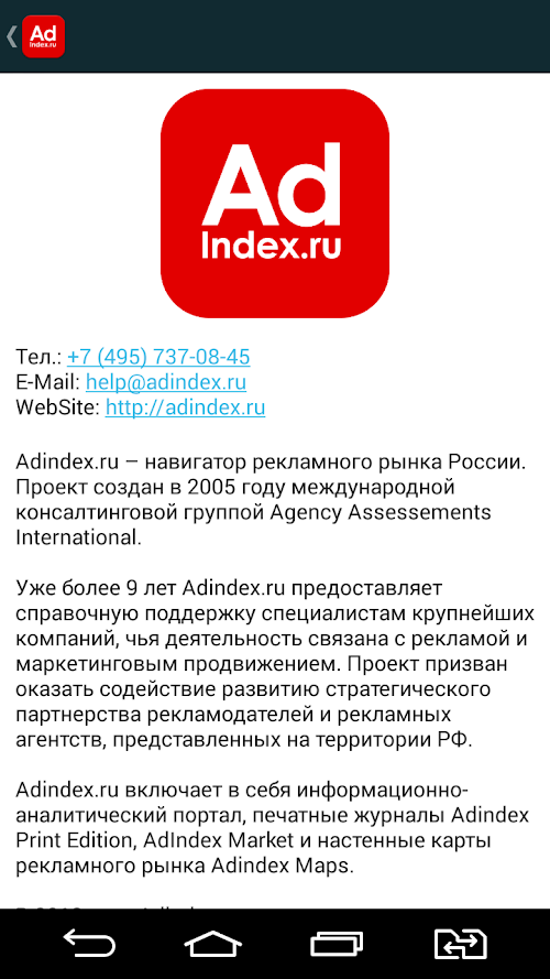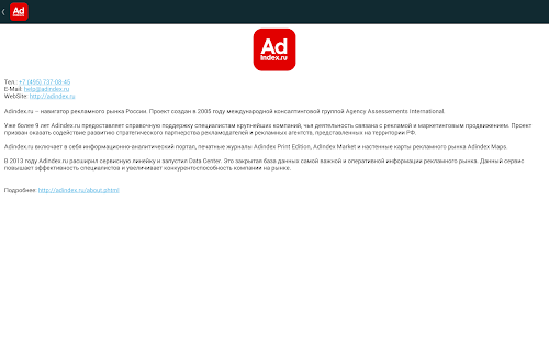 2. 3D-button on the border segment digital opens a set of buttons that further cooperation will lead to forwarding to the appropriate database partition Adindex description and contacts.