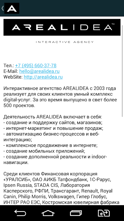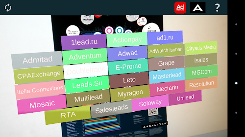 2. 3D-кнопка на границе сегмента digital открывает набор кнопок, дальнейшее взаимодействие с которыми приведёт к переадресации в соответствующий раздел базы данных Adindex с описанием и контактами.Joint project navigator advertising market Adindex.ru and interactive agency AREALIDEA combines a printed map Digital Map 2014 electronic database.