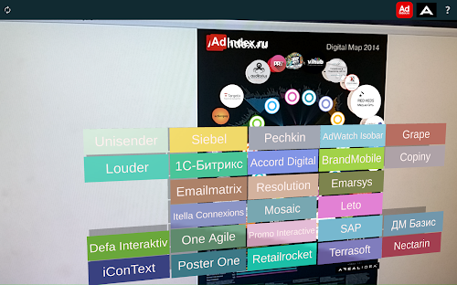 In Digital Map 2014 includes companies that are suppliers of digital-solutions for large advertisers. For each helper card provides information on market share and the level of service rendered, which makes more free process of selecting a contractor.