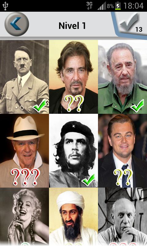 Encontrarás 15 niveles diferentes, dentro de los cuales podrás hallar actores, políticos, deportistas, cantantes o lo que puedas imaginar. Además, si no conoces a alguno, cada uno de ellos tendrá cuatro pistas que te ayudarán a descubrir quién es, las que podrás utilizar en la medida que aciertes los demás personajes.