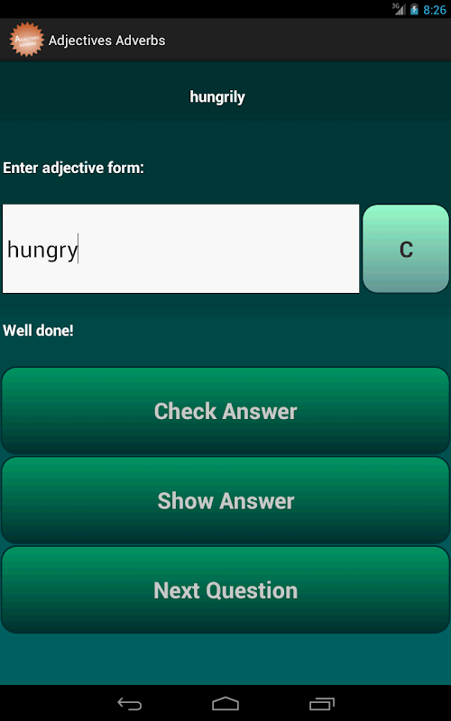 There are 2 modes of practice: Adjective to Adverb and Adverb to Adjective.