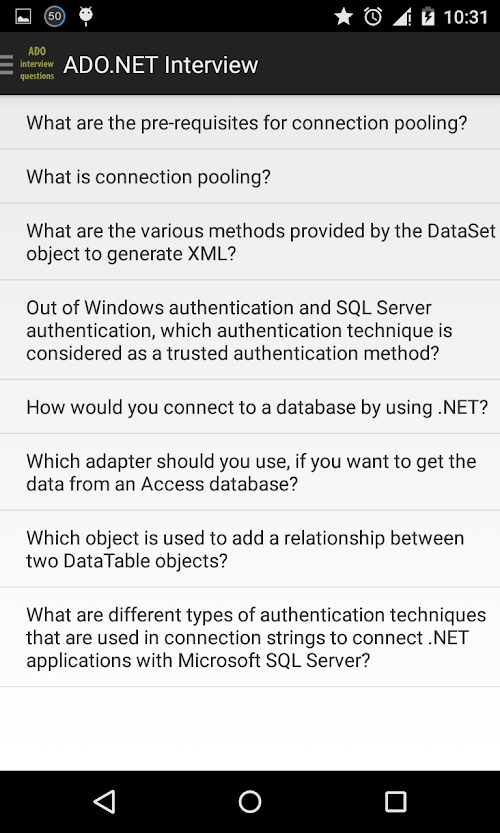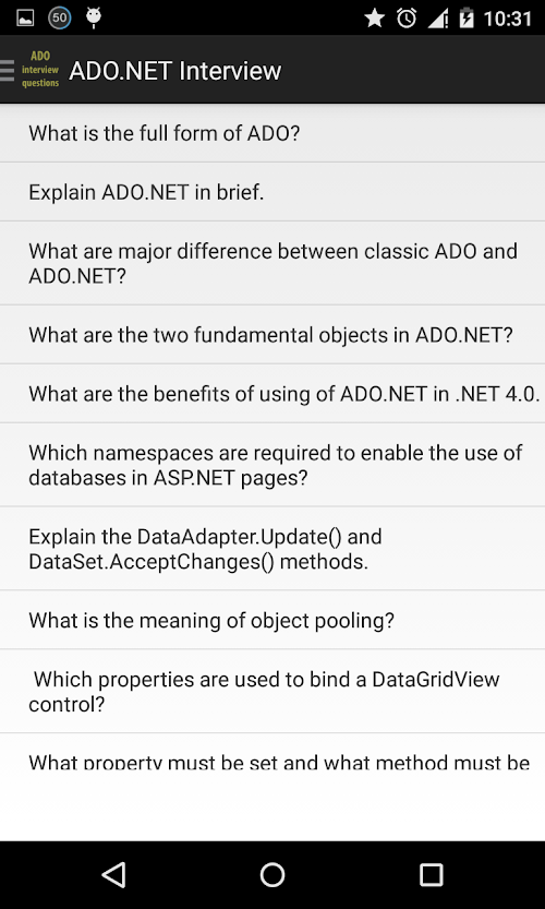 This app is collection of ado.net question for interviewer. We collect a lot of questions from basic to advanced.