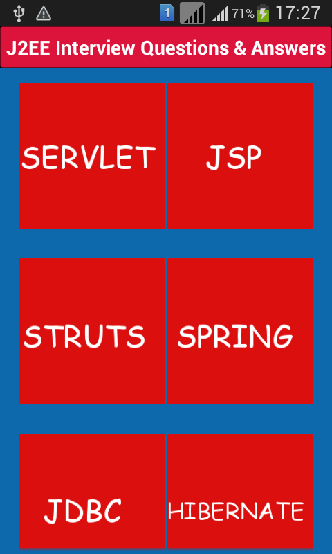 This app contains advanced java(J2EE) questions from various modules as follows.