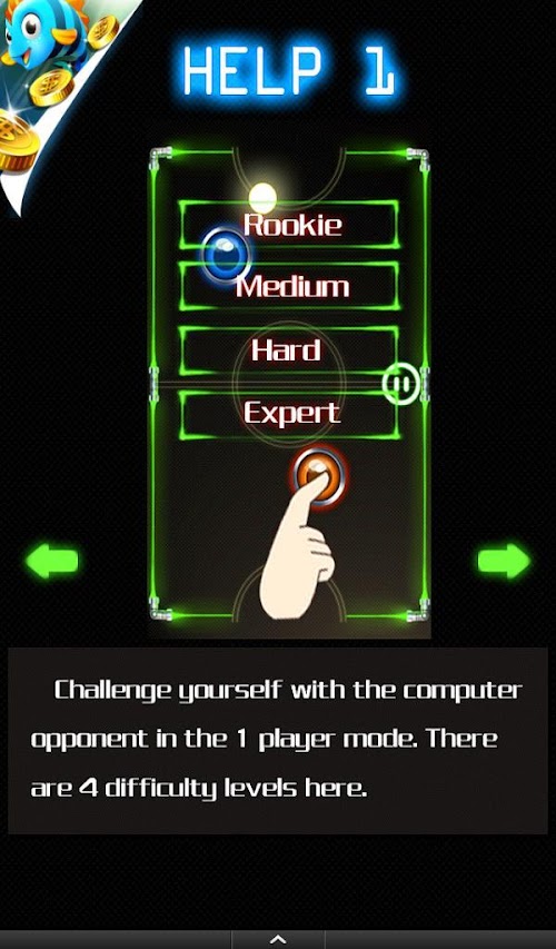 Challenge yourself with the computer opponent in the 1 player mode. There are 4 difficulty levels to choose. The Expert level is fabulously crazy to play!