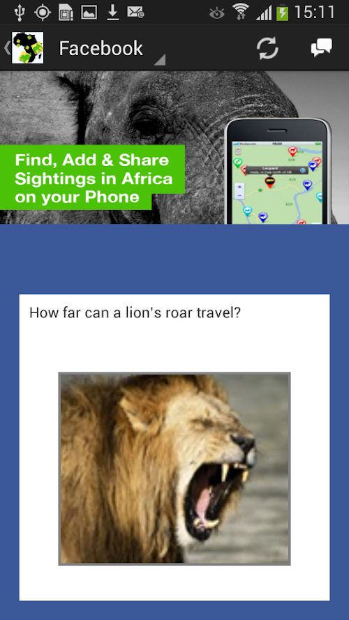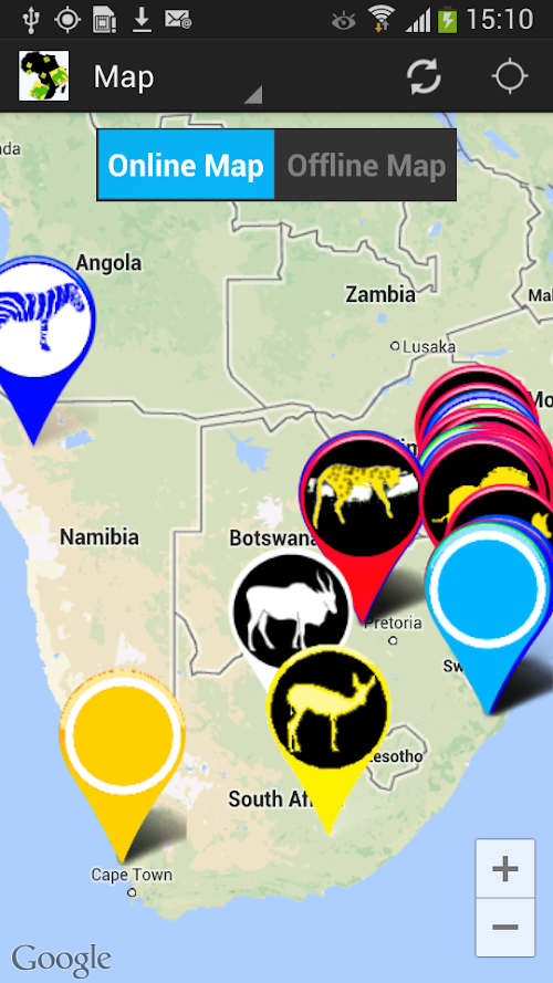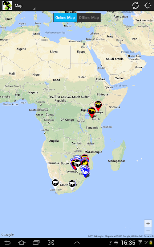 - The ONLY live map of Africa showing your location and the location of recent animal sightings.