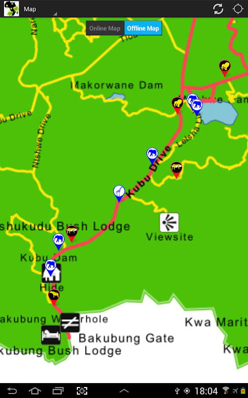Within the app you can purchase detailed offline maps of the major parks in South Africa including: Kruger Park, Hluhluwe, Imfolozi, Pilanesberg, Addo Elephant Park, Kgalagadi, Madikwe, Marakele, iSimangaliso (St Lucia), Ndumo, Ithala, Gondwana and uMkhuze. These maps include 10,000KMs of tar, dirt and 4X4 trails, footpaths, waterholes, hides, viewpoints, picnic spots, gates and other points of interest.