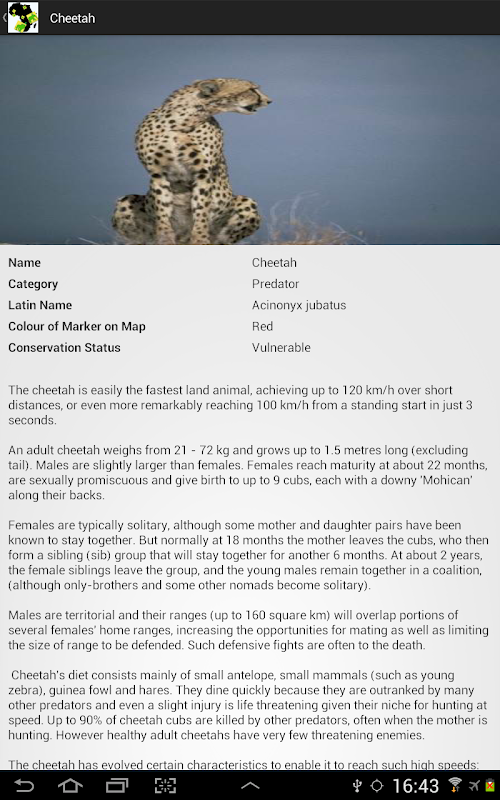 Africa: Live helps you find and share real-time African animal sightings on your phone or tablet as well as generate data for conservation. It is a must-have for any African safari, whether to Kruger or Addo, Serengeti or Pilanesberg.
