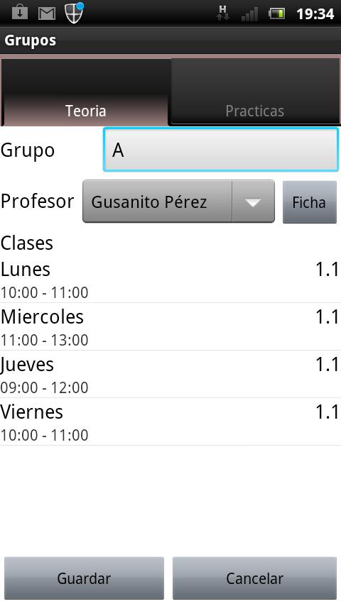 - Grupos de teoria y practicas a los que estan apuntados. Ademas, puede generar el horario universitario