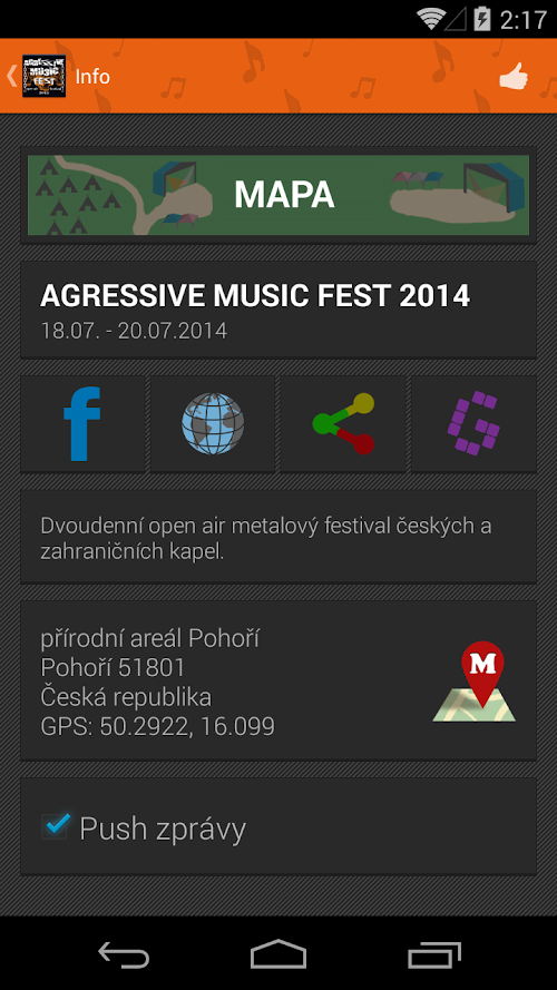 This version of Agressive Music Fest Android App comes with one universal variant which will work on all the Android devices.