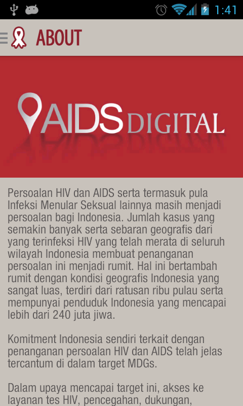Nowadays, there are more than 40.000 people in Indonesia living with HIV, and more than 7.000 of them living without any explanation why they infected the virus. To solve that problem, Indonesia AIDS Coalition, or IAC, making a campaign to spread the information about AIDS and HIV. In order to optimize their campaign, IAC present AIDS DIGITAL as their tool to reach their objective.