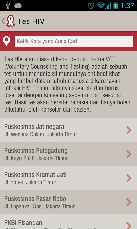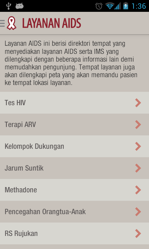 Layanan AIDS directory feature to inform the places with AIDS and HIVservices.