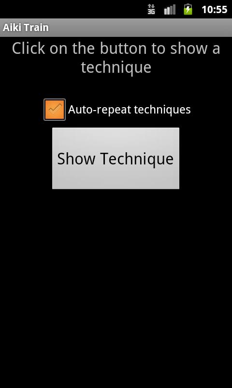 AikiTrain includes a 'repeat' function. If you select this option, AikiTrain chooses a new technique every 30 seconds (if you want to use this feature for an extended period of time, you'll need to modify your power settings so that your device doesn't automatically turn off).