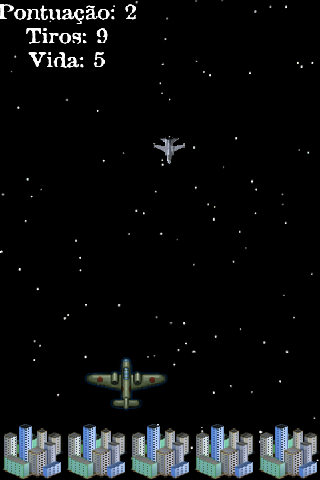 Bom Jogo e Boa Sorte!The Air Battle consists of a set of battle aircraft and its mission is to defend your city. Caution! Every time a plane hit one of the buildings, you will lose a life point.