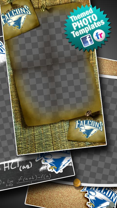 2. Select from a variety of different picture frame templates, including: 1) a Chalk board, 2) Cork Board, 3) Football Field, 3) Wild West Template, 4) Fire Template or 5) Metal Template