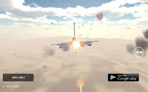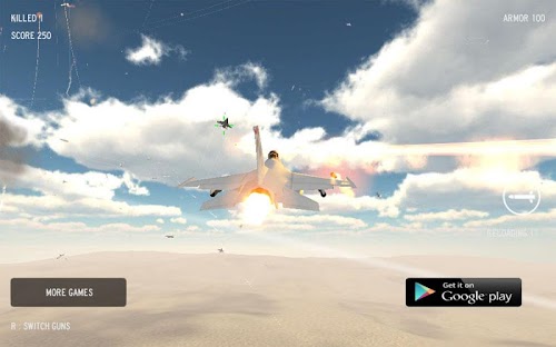 Modern War is here! In the form of a 3D air fighter simulation. Pilot a jet and take down every enemy unit you see. Just go for as long as you can without dying and killing as much as you can. Shoot with your rockets or switch weapons to drop bombs or use your machine gun. Just how long can you go and what score can you get in this flying sim? If you love simulation games you would love this 3D flying game!