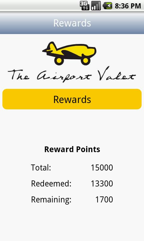 Reward Status: View your current attainment level in The Airport Valet’s “My Rewards” program