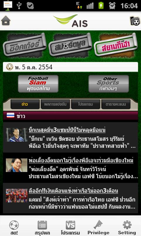 Besides football, it's also providing variety of sport news form all over the world such as Golf, tennis, American Football (NFL), Thai Boxing and snooker promptly updated by No.1 Thai sport journalists of StarSoccer, Sportpool and Siamsport.