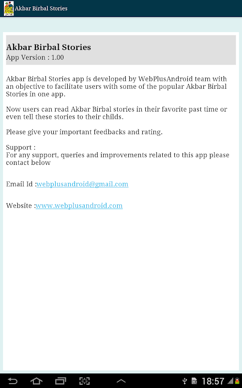 Akbar Birbal Stories app facilitates users with some of the popular Akbar Birbal Stories in one app.