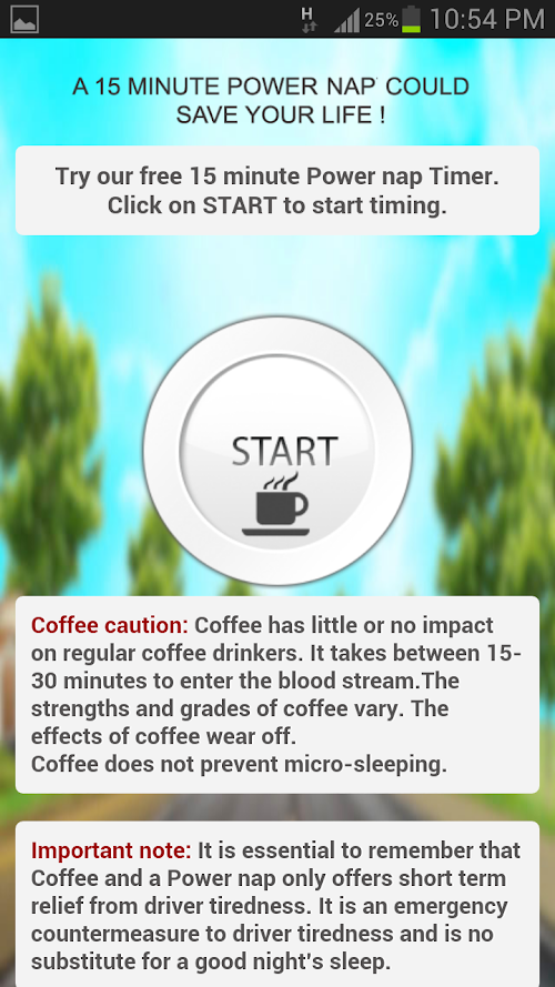 This FREE drowsy driving educational app tells you what you should do to stay alive and to get home safely if you become drowsy while driving your vehicle. A useful 15 minute PowernAP timer is included.This app could save your life ! Everyone should get this app.