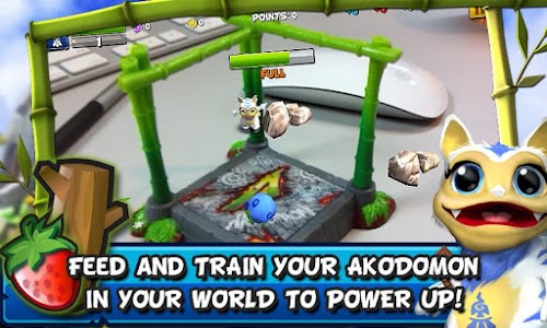 Using the power of Amplified Reality, bring back your Akodomon to your own table top or desk in order to train, feed, and care for your Akodomon. Then travel back into the Akodomon World to continue the adventure.
