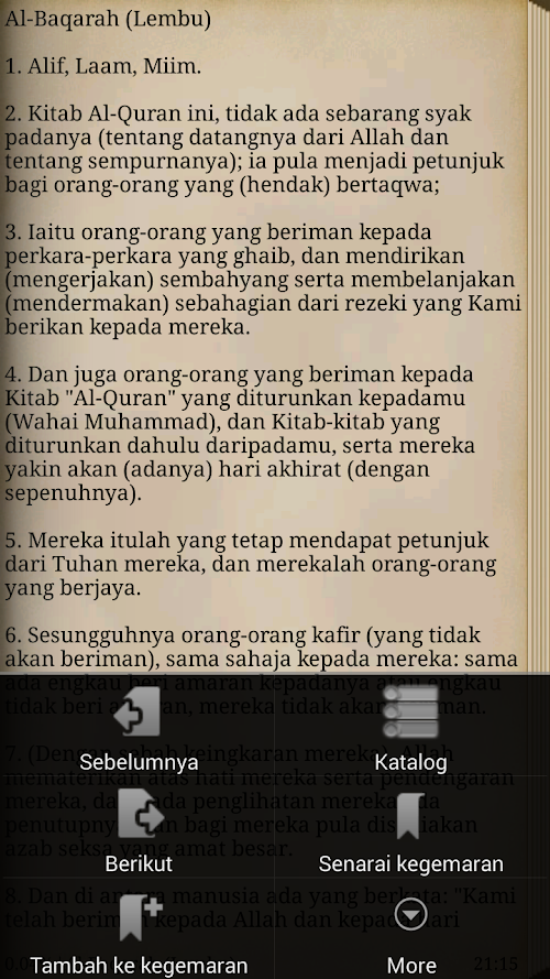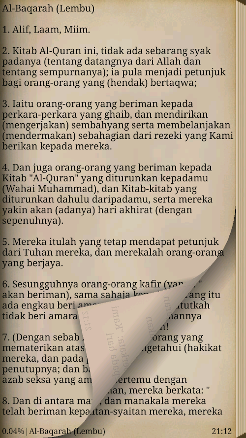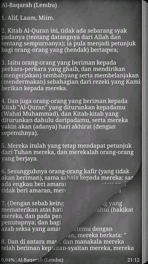 Alif, Laam, Miim. Kitab al-Quran ini, tidak ada sebarang syak padanya (tentang datangnya dari Allah dan tentang sempurnanya); ia pula menjadi petunjuk bagi orang-orang Yang (hendak) bertaqwa; (surah al-Baqarah 2:1-2)
