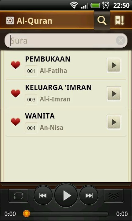 • Listen to surahs either one by one in a loop or by one sura in a loop or on demand