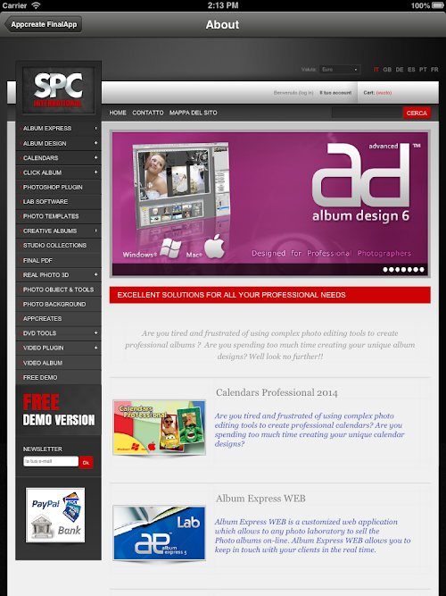 Album Design may be also linked with all types of External Photo Editors for WIN and MAC: Lightroom, Aperture, Nikon NX2, Corel Photo Paint, just to name a few and many others.