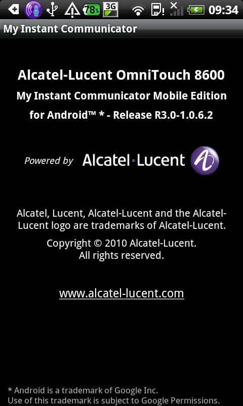 Alcatel-Lucent OmniTouch™ 8600 My Instant Communicator Mobile Edition v3 for Android® brings most of the Alcatel-Lucent unified communication capabilities to your smartphone. It empowers mobile users with advanced communication functions through enterprise-grade services from the 'Alcatel-Lucent OmniTouch™ 8400 Instant Communications Suite' infrastructure.