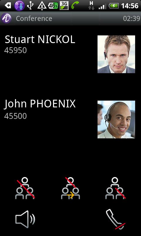 - Make call from local contact list, remote corporate directory, enterprise dialing plan, business call history, business voicemail interface.