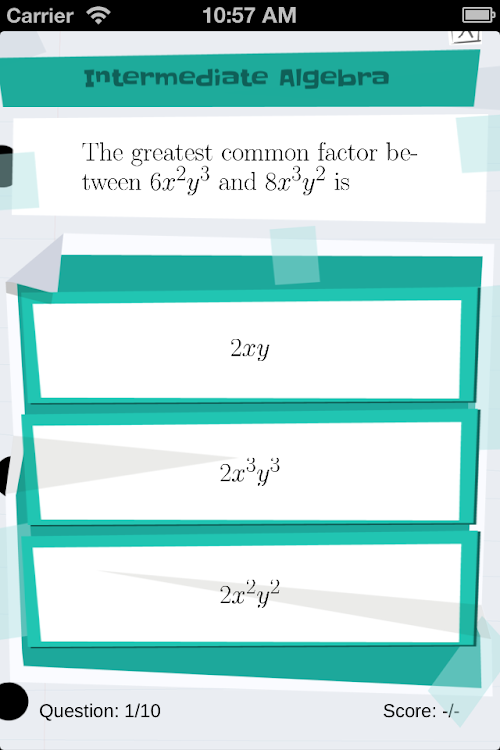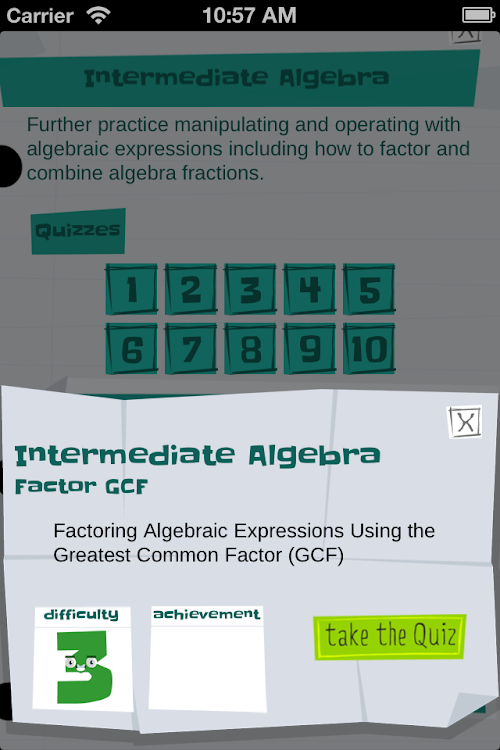 Algebra practice is cake when you play this FUN GAME designed by TOP TEACHERS who bring you exciting math skills practice that will explore all the mathematics you need to master and prepare for college, high school or university pre-calculus and calculus courses. Challenge and upgrade your algebra skills while having mega fun playing a game that takes you through intermediate algebra practice including factoring, polynomials, rational expressions, all the way to sequences and series and even matrix manipulation and calculation!! College level questions get you ready for ACT, SAT and GCSE tests while you train your math brain!!!
