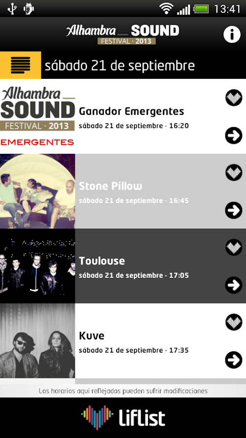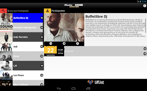 Aplicación oficial del Alhambra Sound Festival, que se celebrará en Granada el próximo 21 de Septiembre.Application Alhambra official Sound Festival to be held in Granada on next September 21.