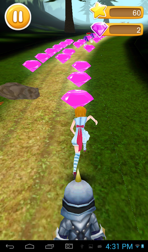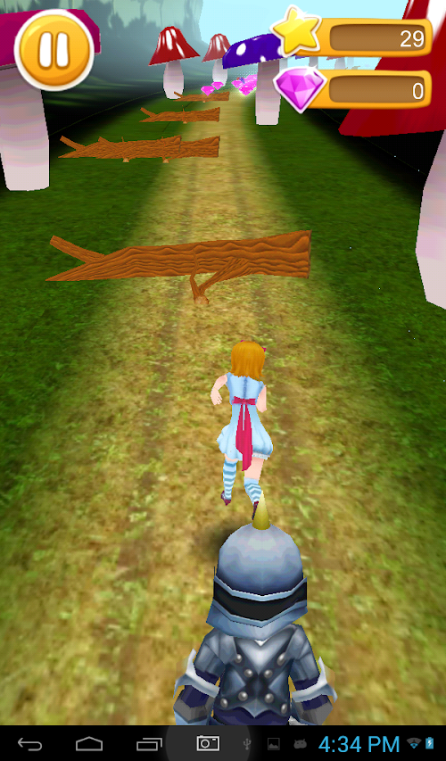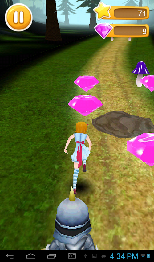Alice Escape is an amazing endless running game.Help Alice which is trapped in Wonderland to escape from the evil queen guard.Alice need to run through the endless forest filled with various obstacles like tree,mushroom and stones.You can earn point by collecting gems along the path.